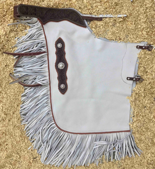 Western Chink Chaps GLATTLEDER cremeweiß mit Conchos