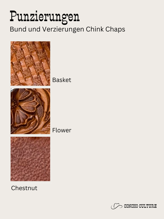 Hier findest du Chaps und Chink Chaps um deinen Westernlook zu perfektionieren. Egal ob Glattleder, Wildleder, schlicht oder auffällig - bei uns wirst du bestimmt fündig. Die Lieferzeit unserer Chaps und Chinks liegt i. d. R. bei ca. 3-4 Wochen.