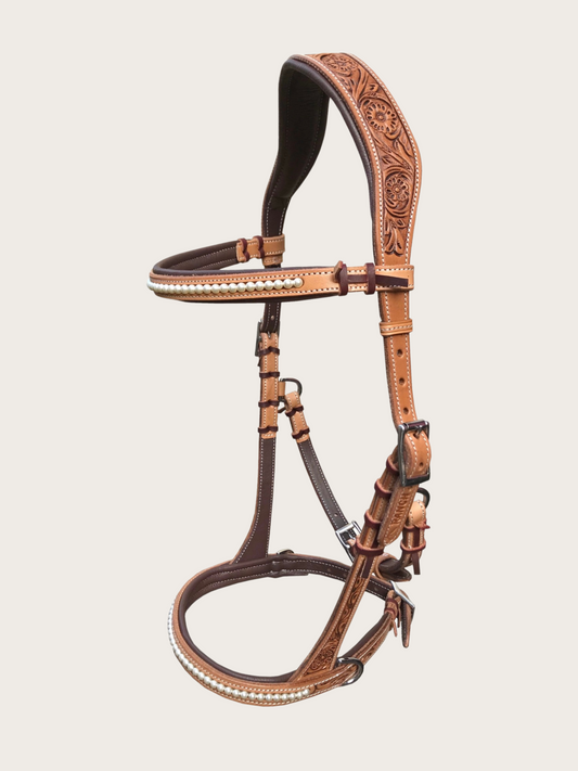 Sidepull anatomisch mit Stirnriemen und Perlen Western