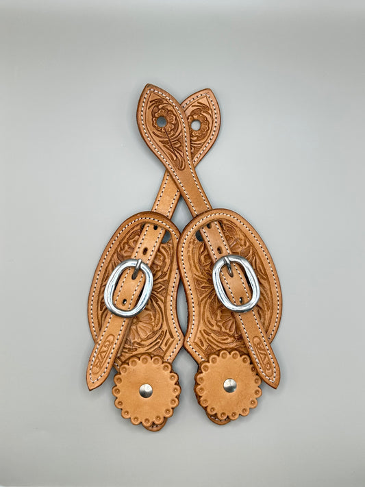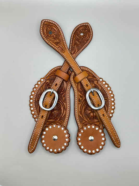 Sporenriemen Strass Western - Flower Punzierung