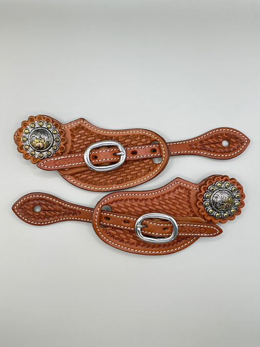 Sporenriemen Set Damen Western - Chestnut mit Sonnenblumen Concho
