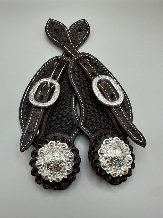 Sporenriemen Set Perlen Western - Dark Chestnut mit individuell bestrassten Conchos