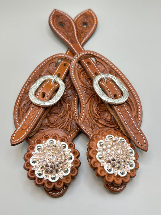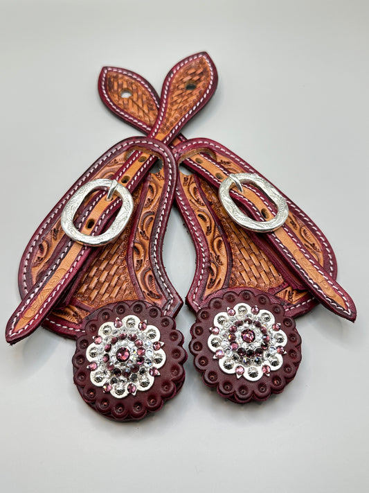Sporenriemen Set Damen Western - Chestnut mit rosèfarbenen Strass-Conchos
