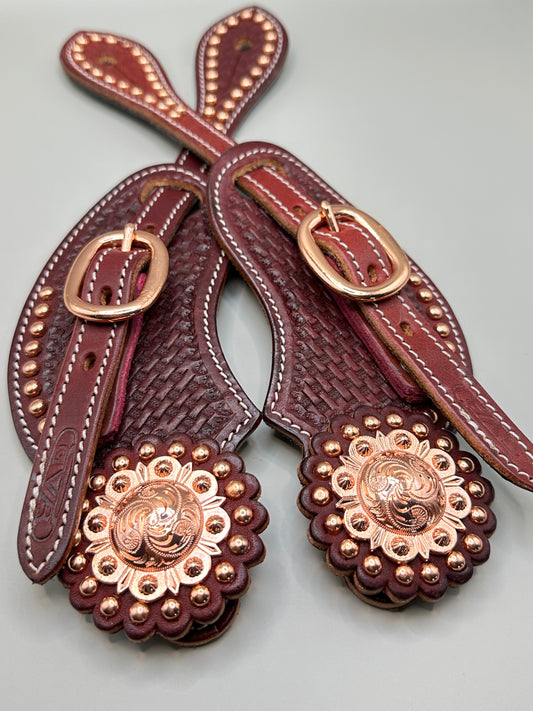 Sporenriemen Set Nieten Western - Latigo mit Conchos in rosé/kupfer