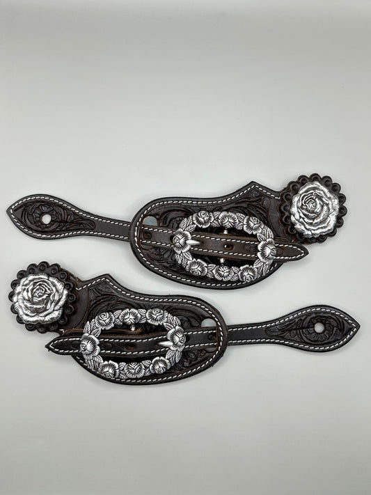 Sporenriemen Set Damen Western - Brown mit Rosen-Beschlägen